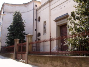 L’attiguo edificio è l’Oratorio del Crocifisso (oggi la scultura è collocata nella chiesa parrocchiale).